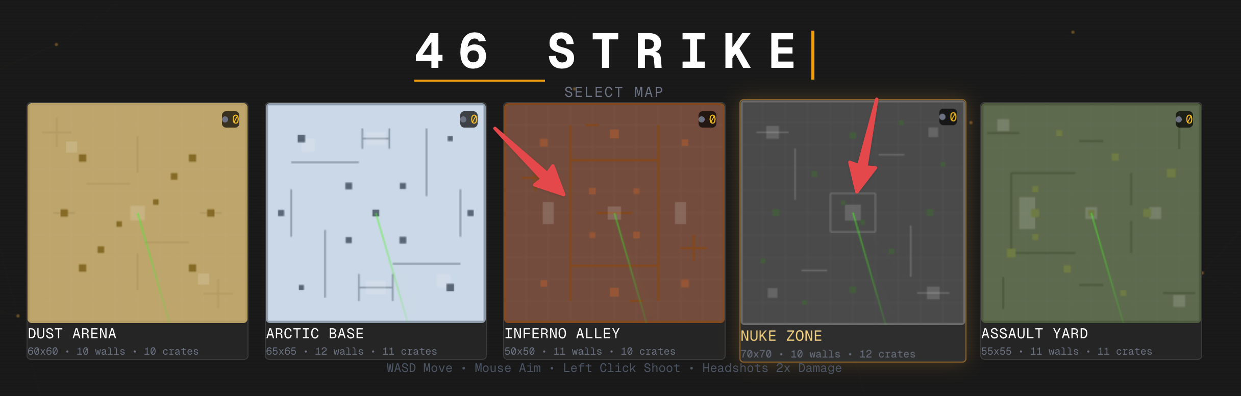 For example, Claude generated maps where players could end up stuck. Here's Claude's "inferno valley" and "nuke zone" produced 4-wall obstacles in the center:
